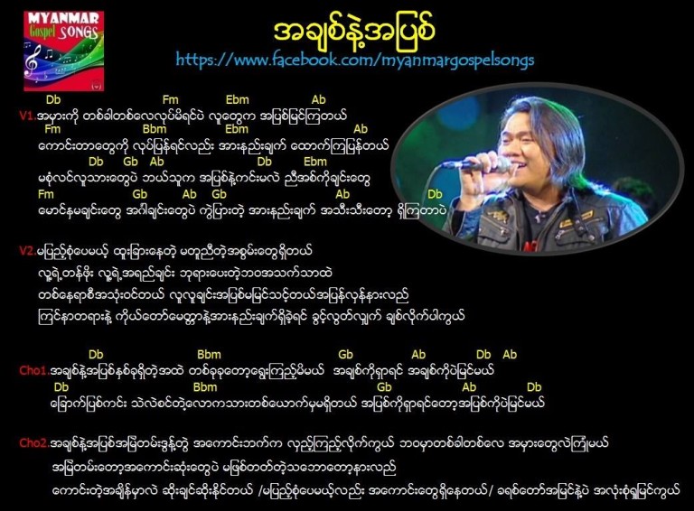 Which implements all the tools needed to write a song, its lyrics, chords, and to write and play the notes in a score, all in the same place, at the same time. Thank you guys for listening ♡( သီးချင်းလေးနားစဥ်ပေးတာအထူးကျေးဇူးတင်ပါတယ် ♥)i hope you guys like this music. Get a collection of christian hymn and prayer common in many gospel books. (ephesians 1:6) 10,000 christian songs lyrics. 90,689 likes · 70 talking about this. You can use this app anywhere, even in church, without requirement of internet connection. This is neither a vote for nor a vote against content copyrights. The melody and lyrics were written by saya tin and adopted as the burmese national anthem in 1947. We will share lyrics and chords of various myanmar songs You can use this app anywhere, even in church, without requirement of internet connection. Kat, nge sue thit, nay zaw aung, myint moe aung, za wah, mg thit min, phoe kar, swe jaw jaw band: These songs are in english and myanmar. Aw ngaai awi nang tengai kawm nai, leu sai thui bo he kai paleaungsi mawn avum nai kha, sabawm pi keung pre aw nang my leaungrei sabawm keung ngaai awi khrei kawm p'rai …